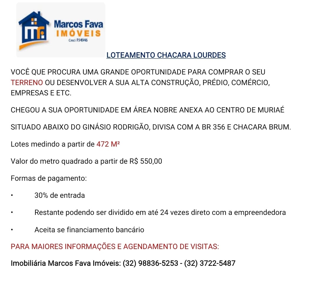 : Lote/Terreno - Chacara de Lourdes - Muriaé