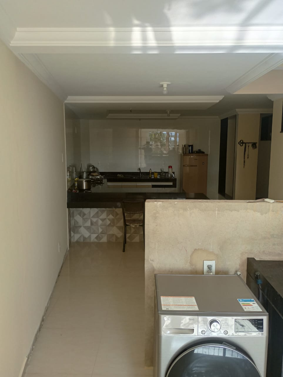 1° Piso térreo – 03 quartos sendo 01 suíte, sala, cozinha, banheiro social, área de serviço, varanda, copa, lavanderia e garagem para 03 carros